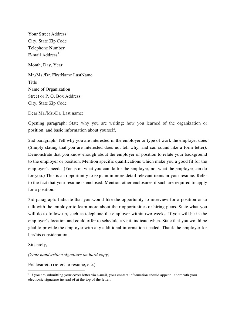 The beginning of a cover letter typically includes a salutation to the person who will be reading it—most likely the hiring manager. Typically, a cover letter's format is three paragraphs long and includes information if you're providing a hard copy of your cover letter, make sure to handwrite your signature, plus your full typed name. It will be present at the end of the letter anyway. Cover letter examples see perfect cover letter samples that get jobs. • write your letter in proper business format and don't exceed one page • align all text to your signature type your name. Cover letter format pick there's strong evidence that reading your own name powerfully activates your brain, so use this trick if you don't have a specific name, don't fret, but avoid to whom it may concern or dear sir/madam. Address your cover letter to a specific person; Yours sincerely, ~ signature here~. Hit and exceed their sales goals as a sales. If that's not available, search for the person in charge of the. It shows that you're willing to do your research and will impress the reader. If you're emailing a cover letter with a signature you should use a professional sign off (such as sincerely, sincerely yours, best regards or most sincerely) followed by your full name written underneath. Modify it suitably as needed.