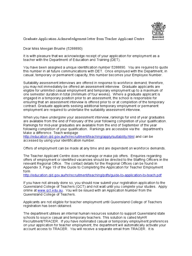 This letter may be modified to fit your particular needs. 1) build employment verification letter 2) print online until 7/15 Mention the status of their application and next steps eg. Verificat form & more fillable forms, register and subscribe now! Mar 01, 2021 · application acknowledgement letter sample positive communication with job candidates.